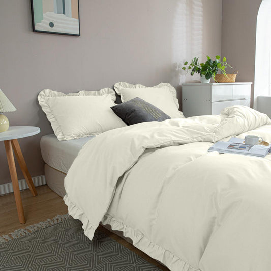 3 halen = 1 betalenDekbedovertrek Mat Satijn™ Ruffle / Ruche Vanilla White